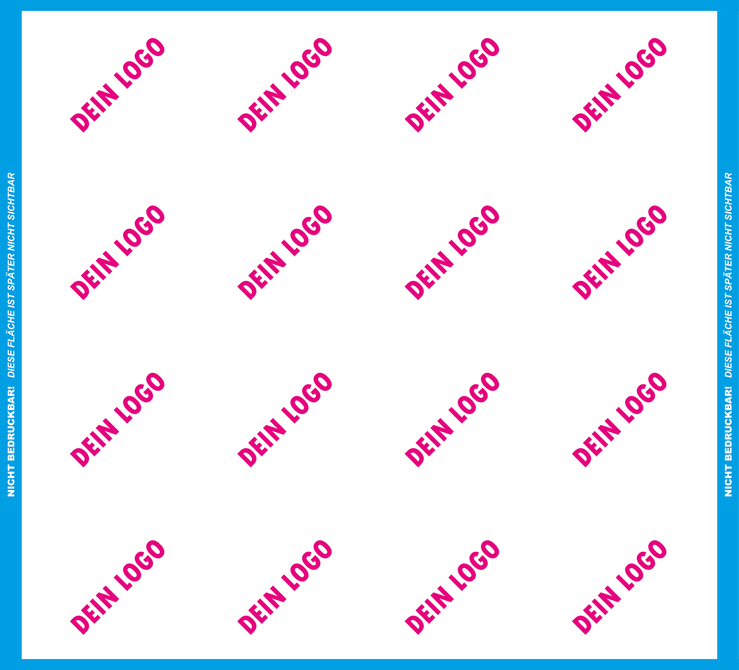 Achte darauf, dass die blauen Flächen auf der Vorlage nicht bedruckt werden dürfen. Platziere dort bitte keine Texte, Logos oder Designelemente.